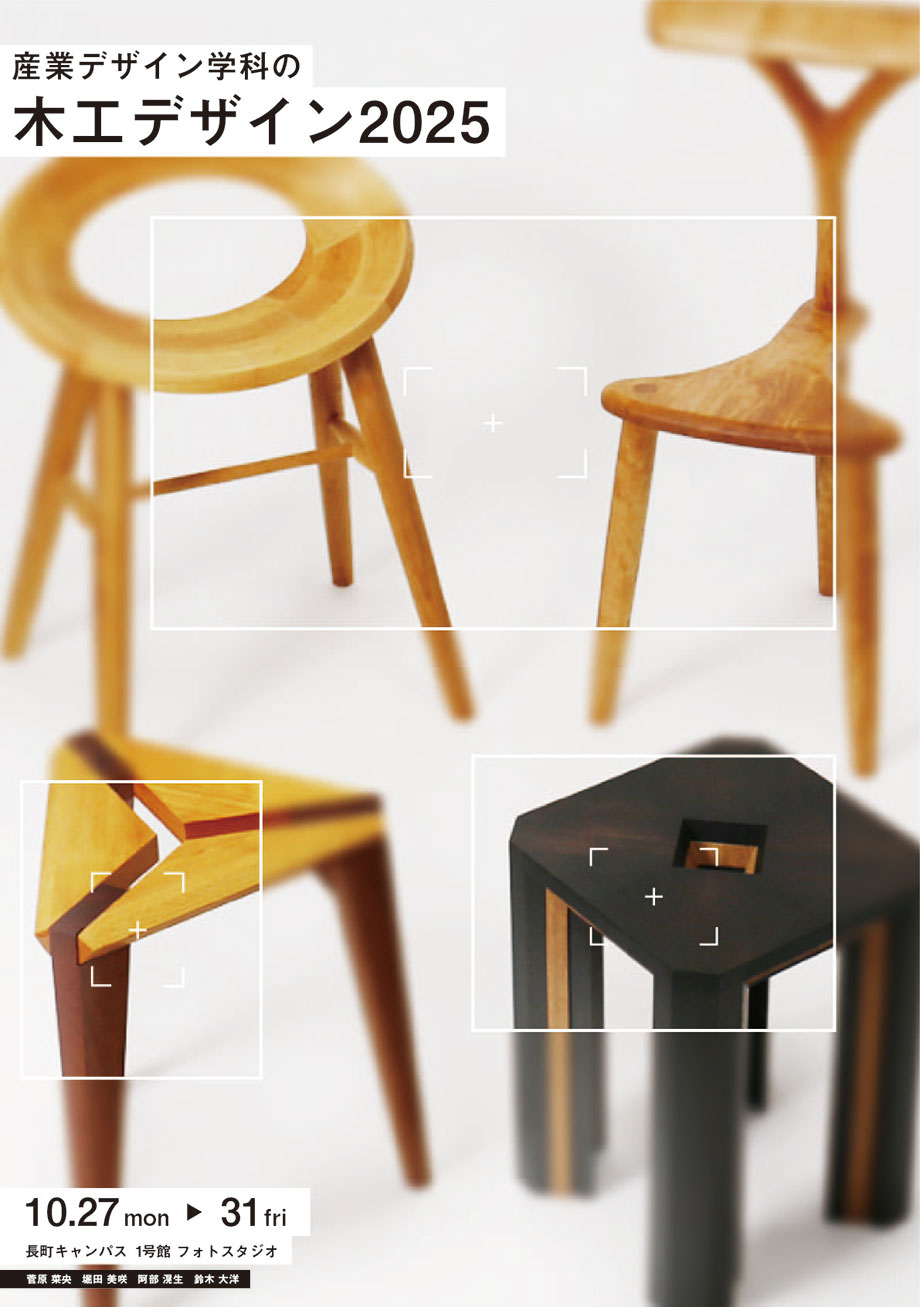 本展では、3年生向け実習課題の中で制作された木工作品を紹介します。「作る技術を知ることから新たな発想を得る」というデザインの真髄をぜひご堪能ください。